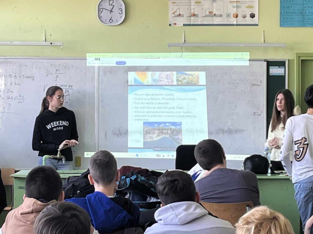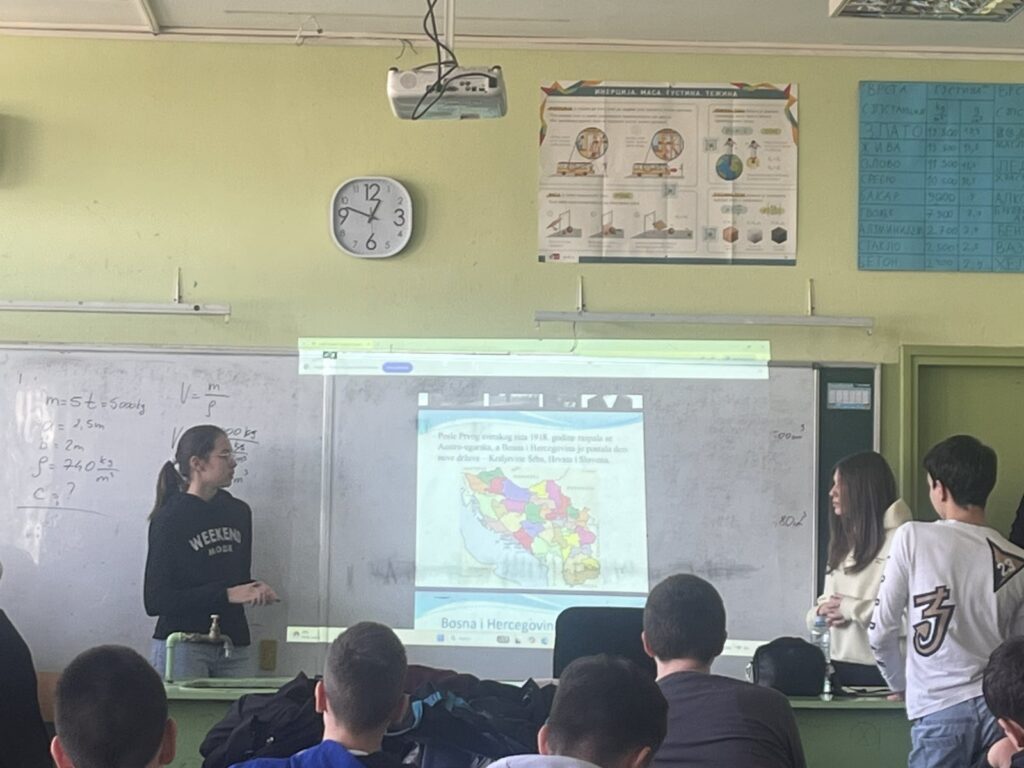 У нашој школи реализован је огледни час из историје и географије за ученике седмог разреда на тему „Насеља – бивше републике СФРЈ. Час су заједнички осмислили и реализовали наставница географије Нела Стојковић и наставник историје Марко Секулић са циљем да ученици повежу знања из ова два предмета и прикажу их кроз самосталан истраживачки рад.
