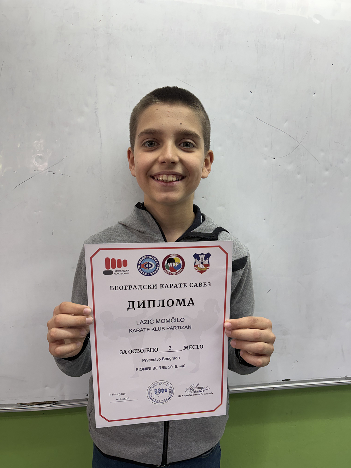 Ученика наше школе Момчило Лазић одељења 4/5 освојио је треће место на такмичењу из каратеа у организацији Београдског карате савеза. Такмичење је одржано у Младеновцу.