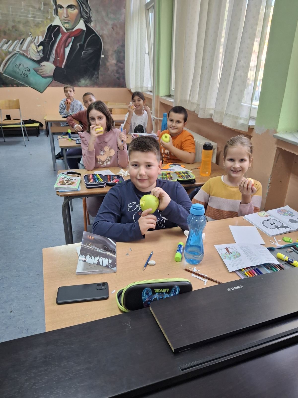 Током дана ученици су кроз све наставне предмете учили о јабуци, њеном пореклу, врстама, хранљивим вредностима и значају за здравље.